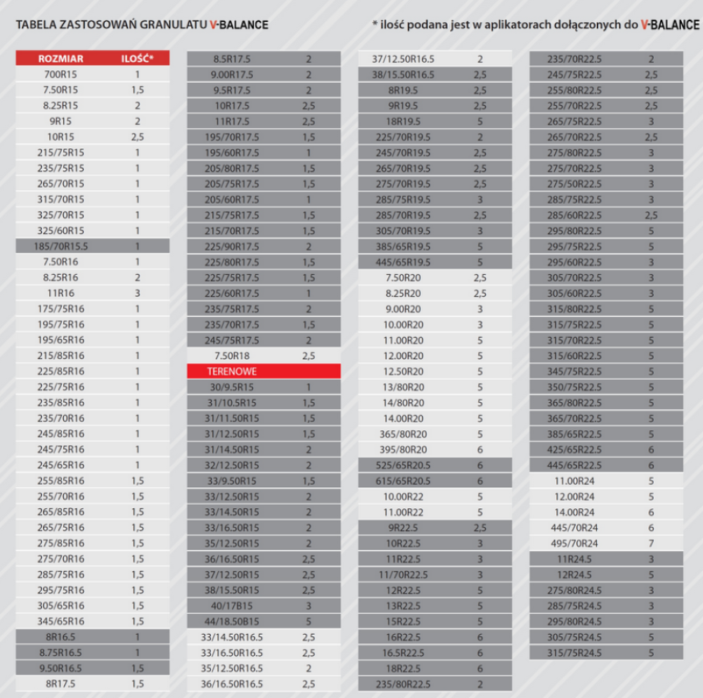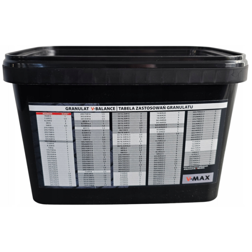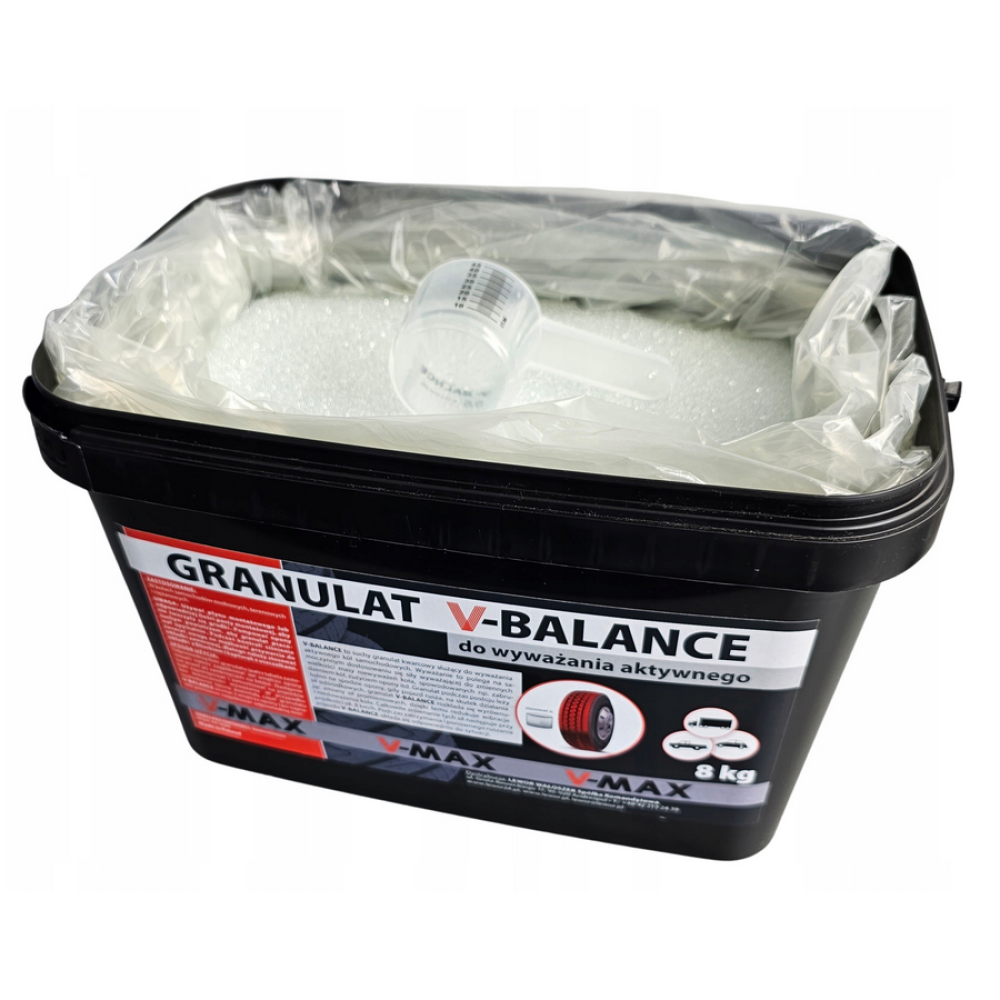 V-BALANCE to wysokiej jakości suchy granulat kwarcowy opracowany przez markę V-MAX, przeznaczony do aktywnego wyważania kół samochodowych. Produkt zapewnia samoczynne i automatyczne wyrównanie sił wyważających w obrębie koła. Proces wyważania z użyciem granulatu polega na samoczynnym dostosowaniu się siły wyważającej do zmiennych wielkości masy niewyważeń koła, spowodowanych np. zabrudzeniami koła, zużyciem opony itd. Podczas postoju granulat spoczywa luźno na spodzie opony. Gdy pojazd rusza na skutek działania sił odśrodkowych rozkłada się wyrównując zmiany sił promieniowych, dzięki czemu redukuje wibracje i niedoważenia koła. Pełne zrównoważenie sił następuje już przy prędkości około 8 km/h. Granulat działa w sposób ciągły. Przy każdym zatrzymaniu i ruszaniu ponownie układa się odpowiednio do warunków jazdy.
