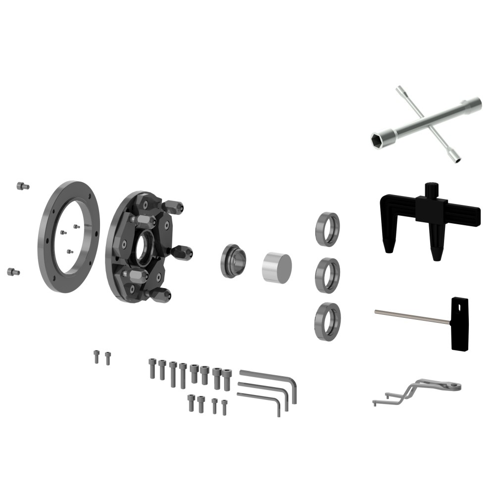 Specjalny uchwyt do felg z nieprzelotowym otworem centralnym. Praktyczne rozwiązanie przeznaczone do wyważarek, które umożliwia prawidłowy montaż kół o konstrukcji uniemożliwiającej tradycyjne centrowanie przez otwór centralny. Zastosowanie dedykowanych pierścieni centrujących oraz elementów mocujących, daje nam pewne i stabilne osadzenie felgi na maszynie. System został zaprojektowany dla wyważarek wyposażonych w łącze cylindryczne o średnicy 40 mm.